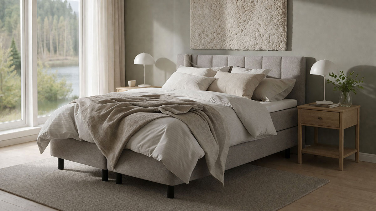 Korkeammalla, tarkemmin myötäilevällä pussijousituksella, viidellä mukavuusvyöhykkeellä oleva kotimainen Unico Clara Lux 160×200 cm 5-vyöhyke jenkkisänkypaketti tarjous täysin vartaloa myötäilevänä. Valitse tämä parisänky päädyllä tai ilman.